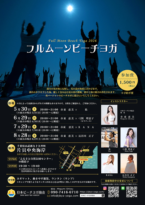 2026年度のフルムーンビーチヨガ「片貝海岸」でのスケジュールを発表致します。